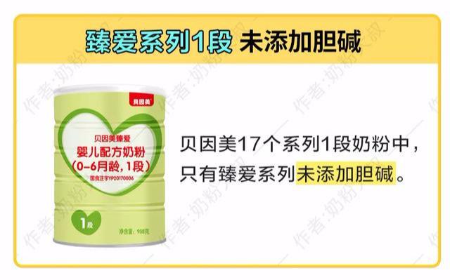 所以,如果是纯奶粉喂养,0-6个月的宝宝最好还是选择含有胆碱的配方,这次横评的贝因美17个系列奶粉中,只有臻爱1段没有添加胆碱,其他系列都添加了。